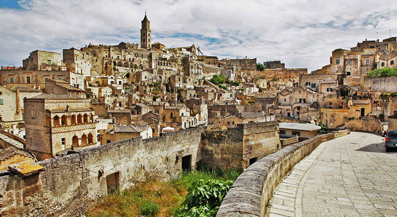 Matera er et sted alle burde se i løbet af deres levetid - og selvom det ligger i regionen Basilicata, er det lige på den anden side af regionsgrænsen til Apulien. Byen er kendt for dens “Sassi di Matera”, et område med forhistoriske bosættelser. De særlige hulebebyggelser, som er hugget ind i bjergsiden, har været beboet i tusinder af år. Hulerne, der ligger i 10-12 etagers højde, blev erklæret uegnede som menneskeboliger i 1951, og næsten 23.000 beboere i Sassi blev flyttet til nyopførte beboelsesejendomme.