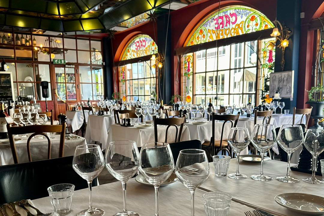 Den helt rigtige stemning er sat, når du kan nyde en lækker burgermenu under det unikke glasloft hos Restaurant Provence og skue ud på gaden gennem det flotte glasparti.