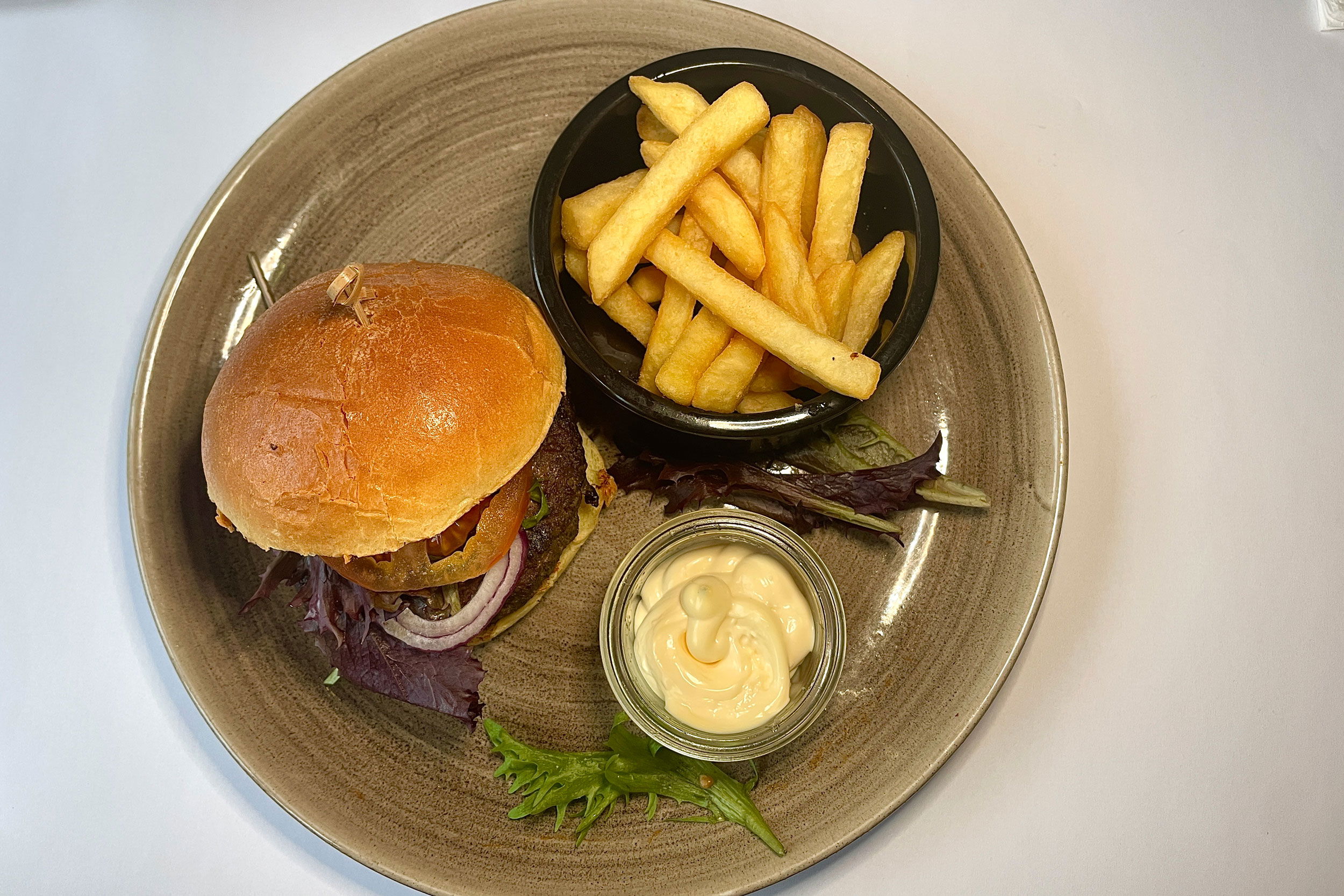 Blandt 2 luftige boller ligger en saftig bøf med oksekød fra Himmerland, frisk salat, tomat og løg samt den enestående hjemmelavede dressing. Som om det ikke var nok, følges burgeren af sprøde pommes frittes. Du får selvfølgelig hele molevitten til en særlig DEALpris.