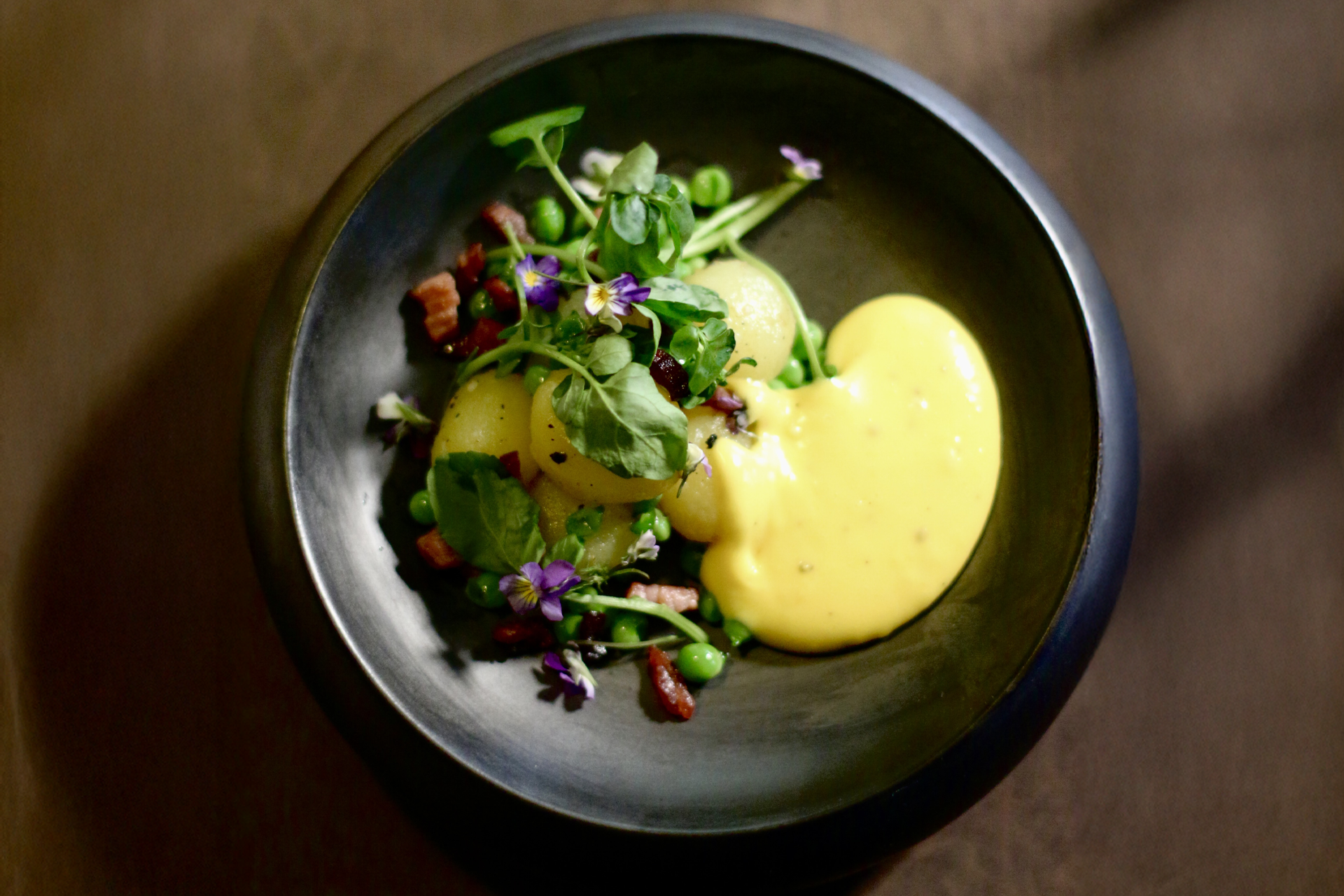 "Vi bliver betjent af to tjenere. Endda er den ene af dem, hoteldirektøren, Allan Jakobsen, der passioneret giver sig tid til at fortælle om maden, og kommer med de ekstra bemærkninger om, hvor råvarerne kommer fra.