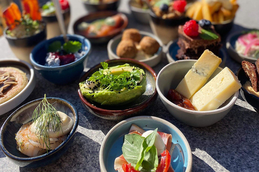 4 valgfri tapas-brunchretter inkl. friskbagt brød og smør