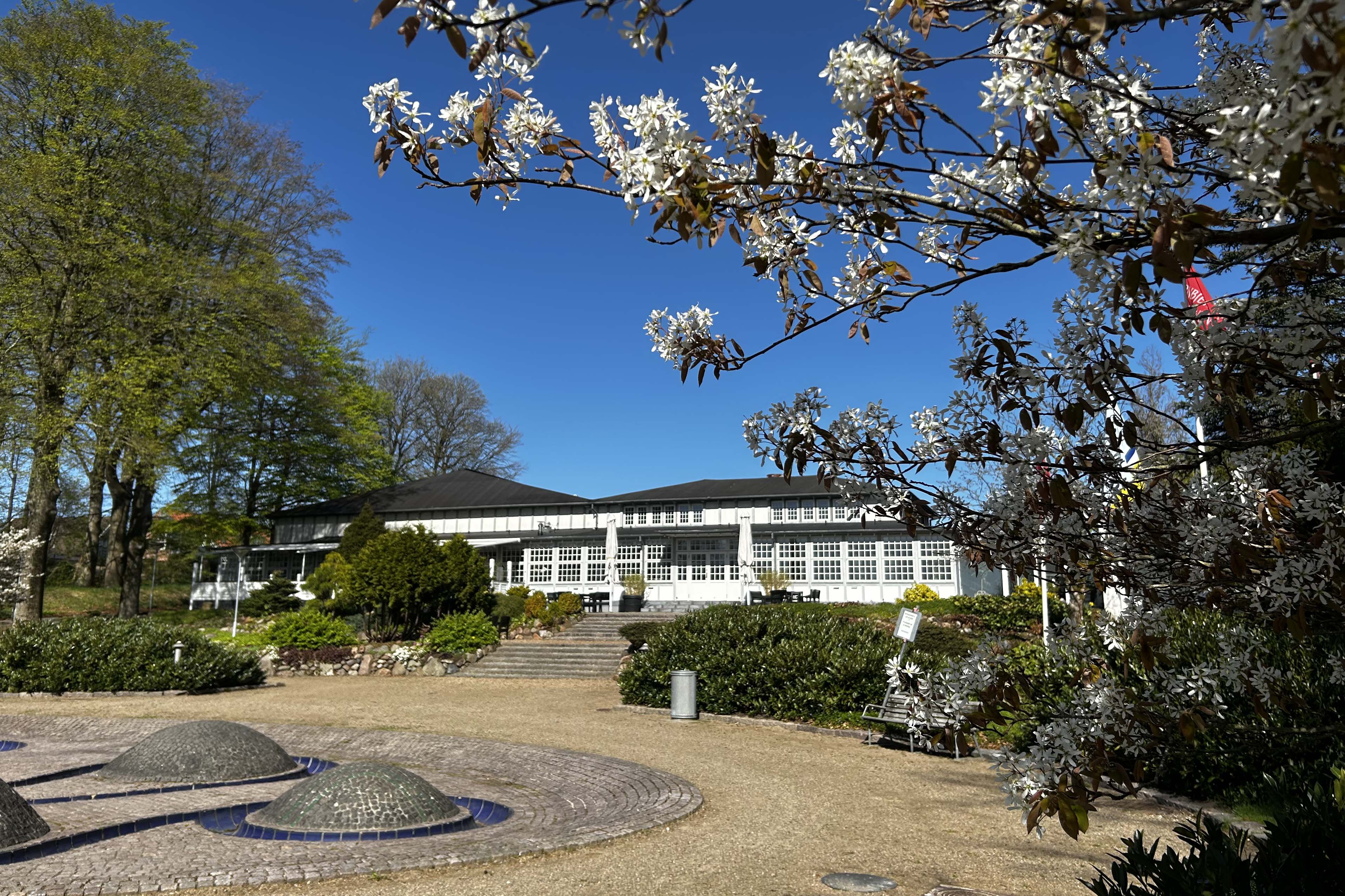 Den smukke udsigt til Arnbjergparken kan nydes fra restauranten og fra alle værelserne. Nyd en kop kaffe eller et glas vin i parken på de tørre dage og kom helt tæt på idyllen, der rammer stedet så fint ind.