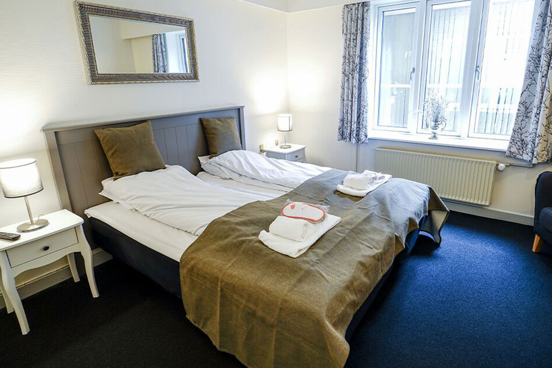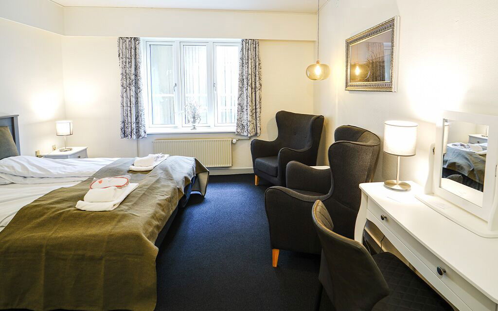 Bemærk, der er ikke rengøring mellem dag 1 og 2. Ønskes let rengøring aftales det med hotellets reception.