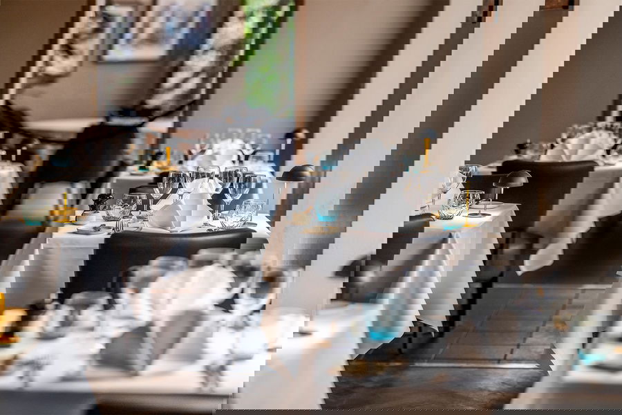 Den inkluderede middag serveres i Restaurant Ry'tteriet og er en sand, gastronomisk oplevelse. Middagen er sammensat af den dygtige køkkenchef efter sæsonens muligheder med fokus på friske, lokale råvarer.