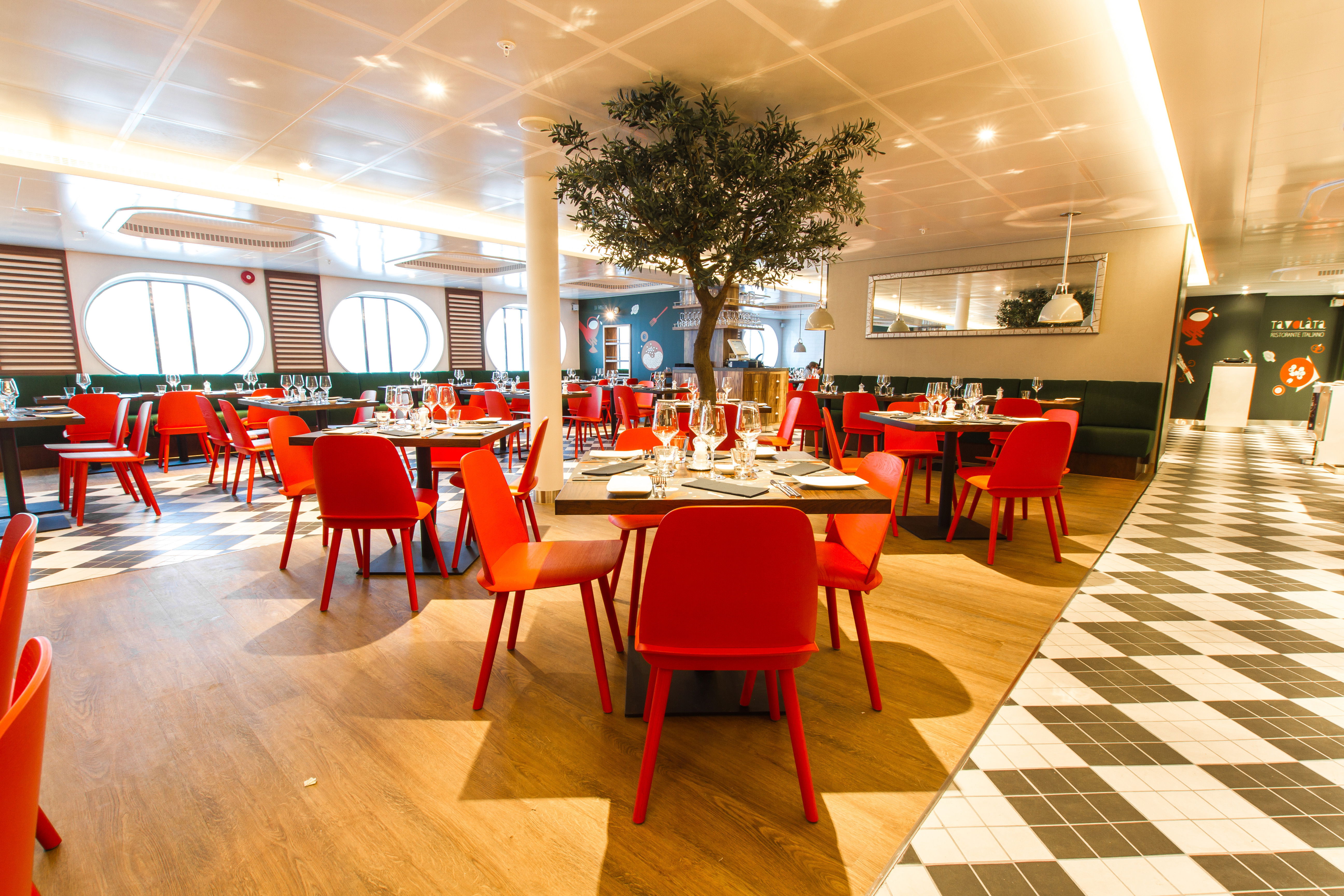 Udvendige kahytter (A): Kahytter med vindue med plads til 1-4 personer. Kahytterne er ca. 11 m2 store og udstyrede med garderobe, to separate senge, bruser og wc samt tv.